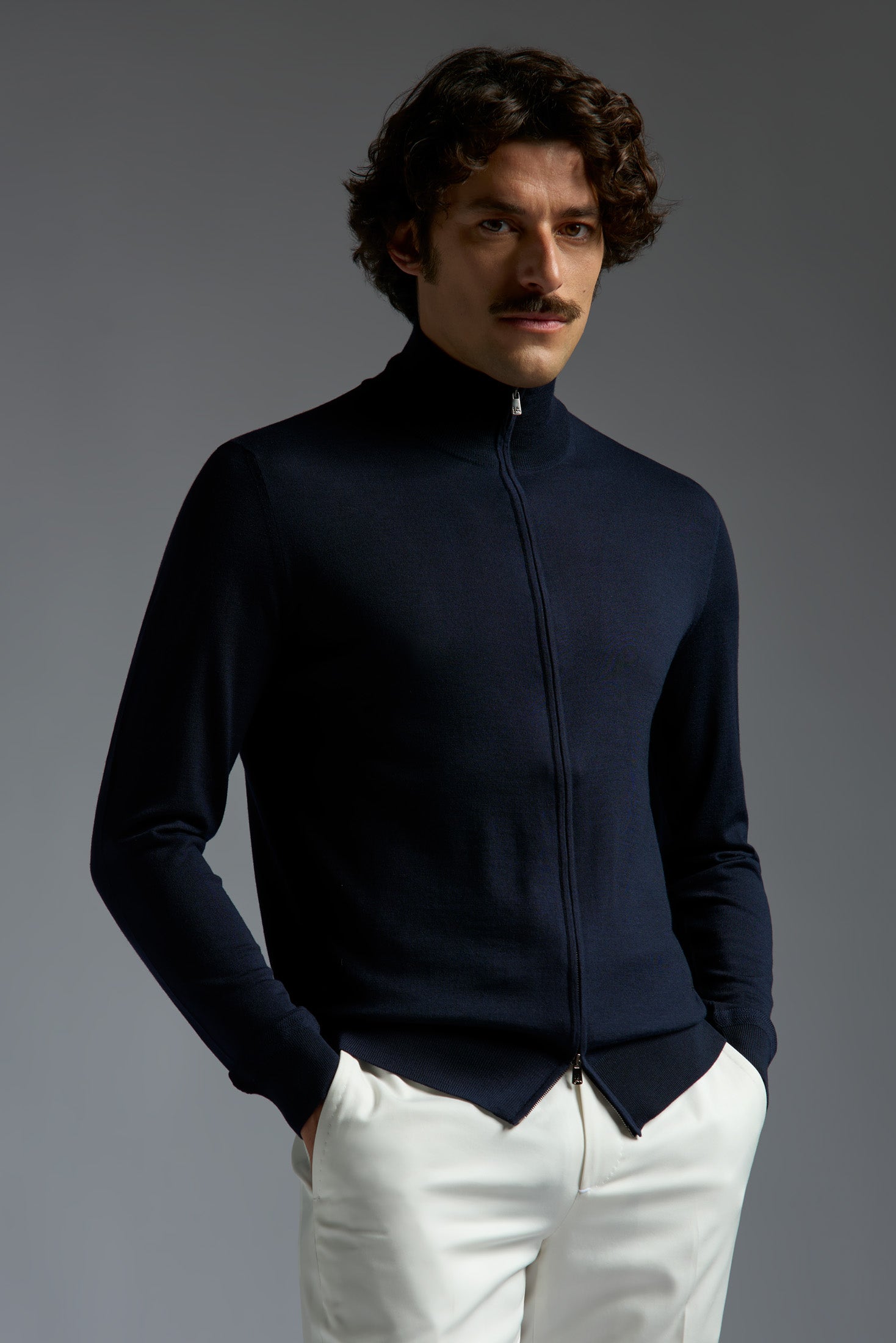 Our sporty crewneck full zip sweater signals the start of season. It has a layerable and classic look that you won't want to hide under a sport jacket.